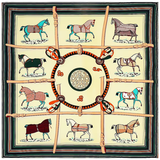 ADELINE 70 Horse Design, Satin Scarf - 70 x 70 cm