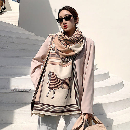 BELLE Horse design, Cashmere Blend Pashmina/Shawl - 180 x 65 cms