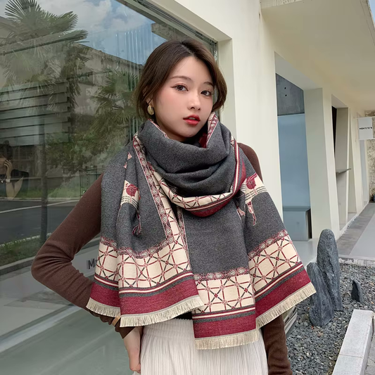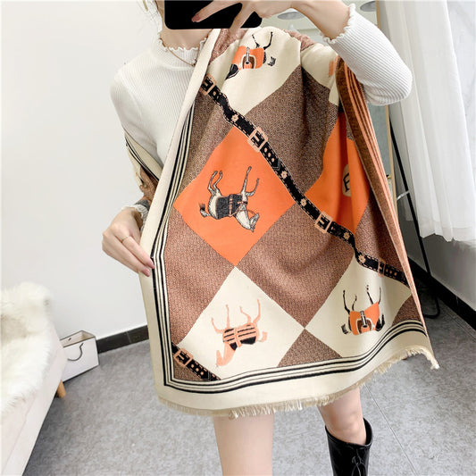 ALAINE Horse Design Cashmere Blend Pashmina/Shawl - 180 x 65 cms