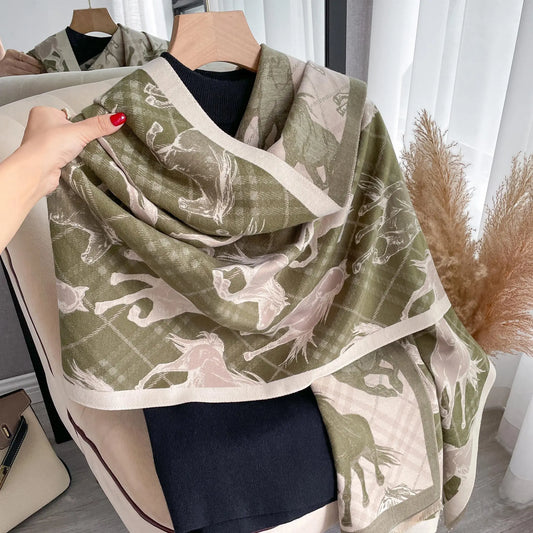 CLAIRE Horse Design Cashmere Blend Pashmina/Shawl - 180 x 65 cms