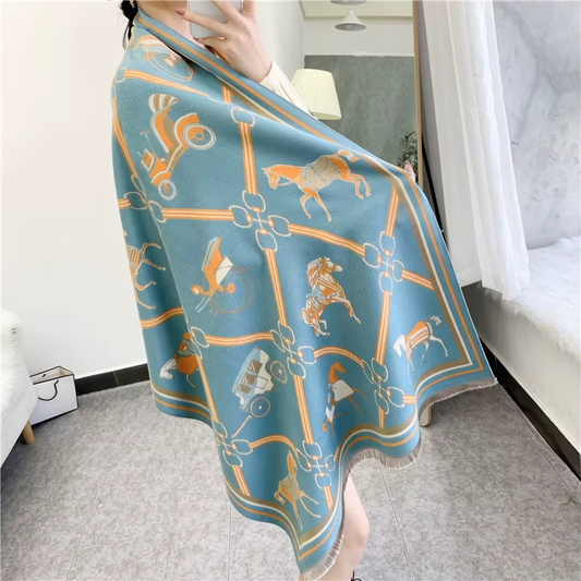 AUDREY Horse Design, Cashmere Blend Pashmina/Shawl - 180 x 65 cms