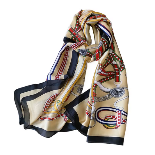 CORDELIA Horse Design, Man-Made Silk Scarf - 180 x 90 cms