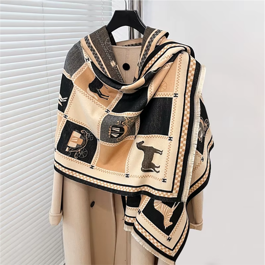 SHERELLE Horse Design Cashmere Blend Pashmina/Shawl - 180 x 65 cms