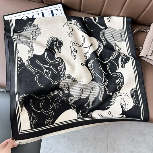 SERINA Horse Design Cashmere Blend Pashmina/Shawl - 180 x 65 cms