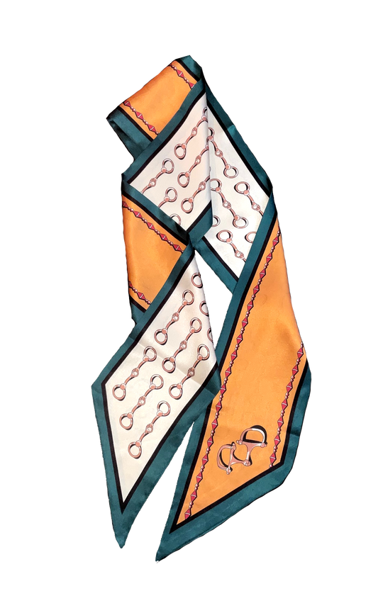 ORLANDO Horse Design Twilly Scarf, Hair or Handbag Tie - 85 x 5 cms PURE SILK