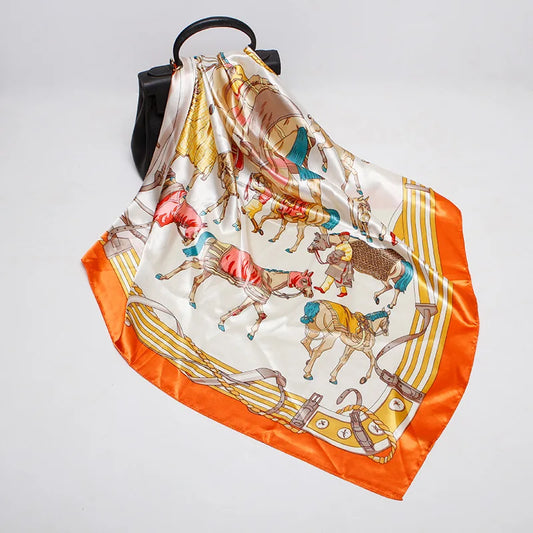 ARLET Horse Design Satin Scarf - 90 x 90 cms