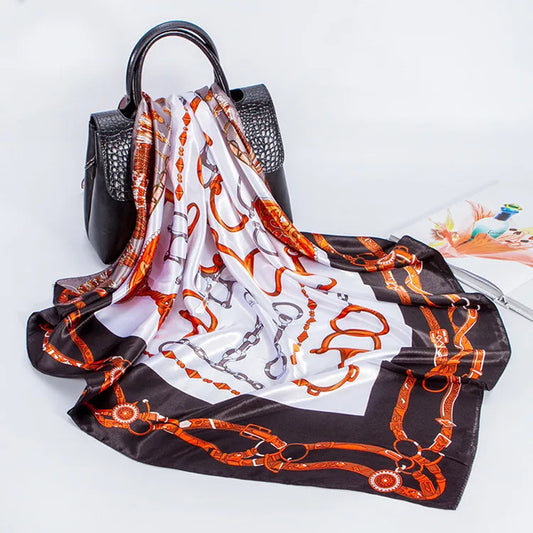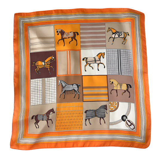 CARLA Horse Design Satin Scarf - 90 x 90 cms