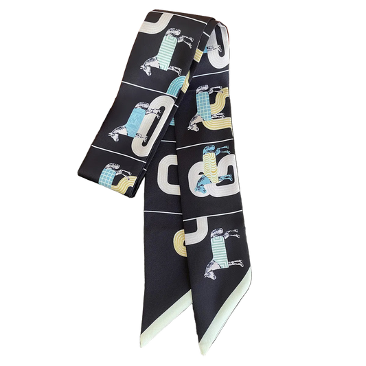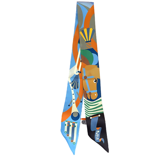 PARIS Horse Design Twilly Scarf, Hair or Handbag Tie - 85 x 5 cms