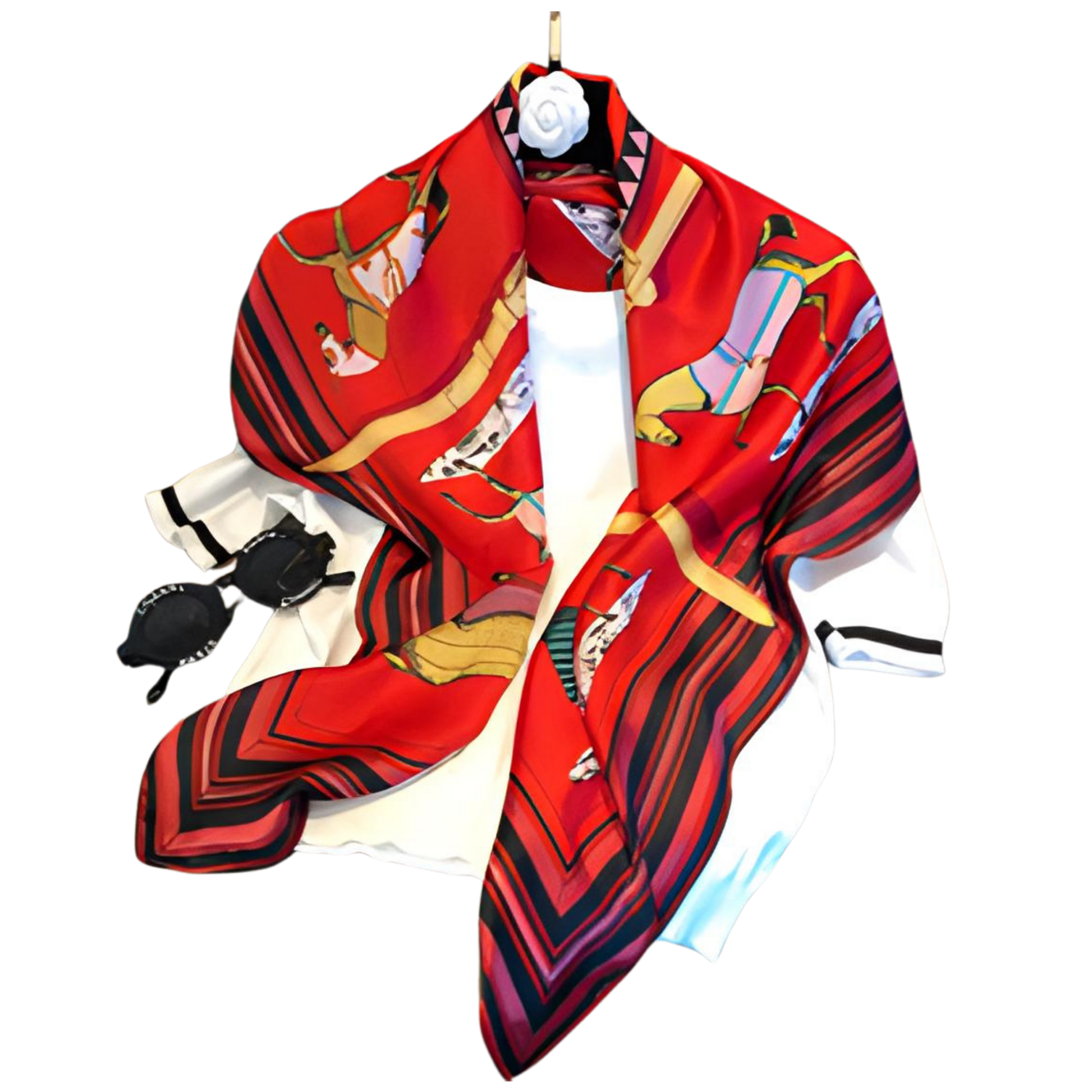 The large, twill scarf is a versatile accessory that combines style with functionality. Crafted from high-quality synthetic fibres, this scarf features a soft, smooth texture and a vibrant sheen that adds a touch of elegance to any outfit. It can be draped around the neck for warmth, styled as a wrap over the shoulders for a chic look, used as a hair wrap or tied on a hat.