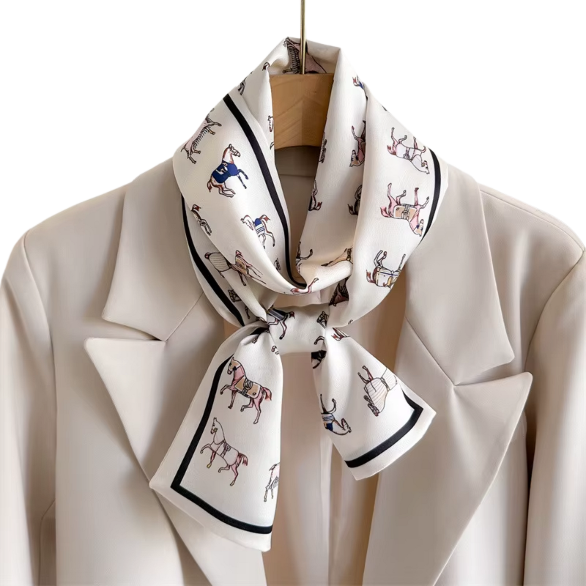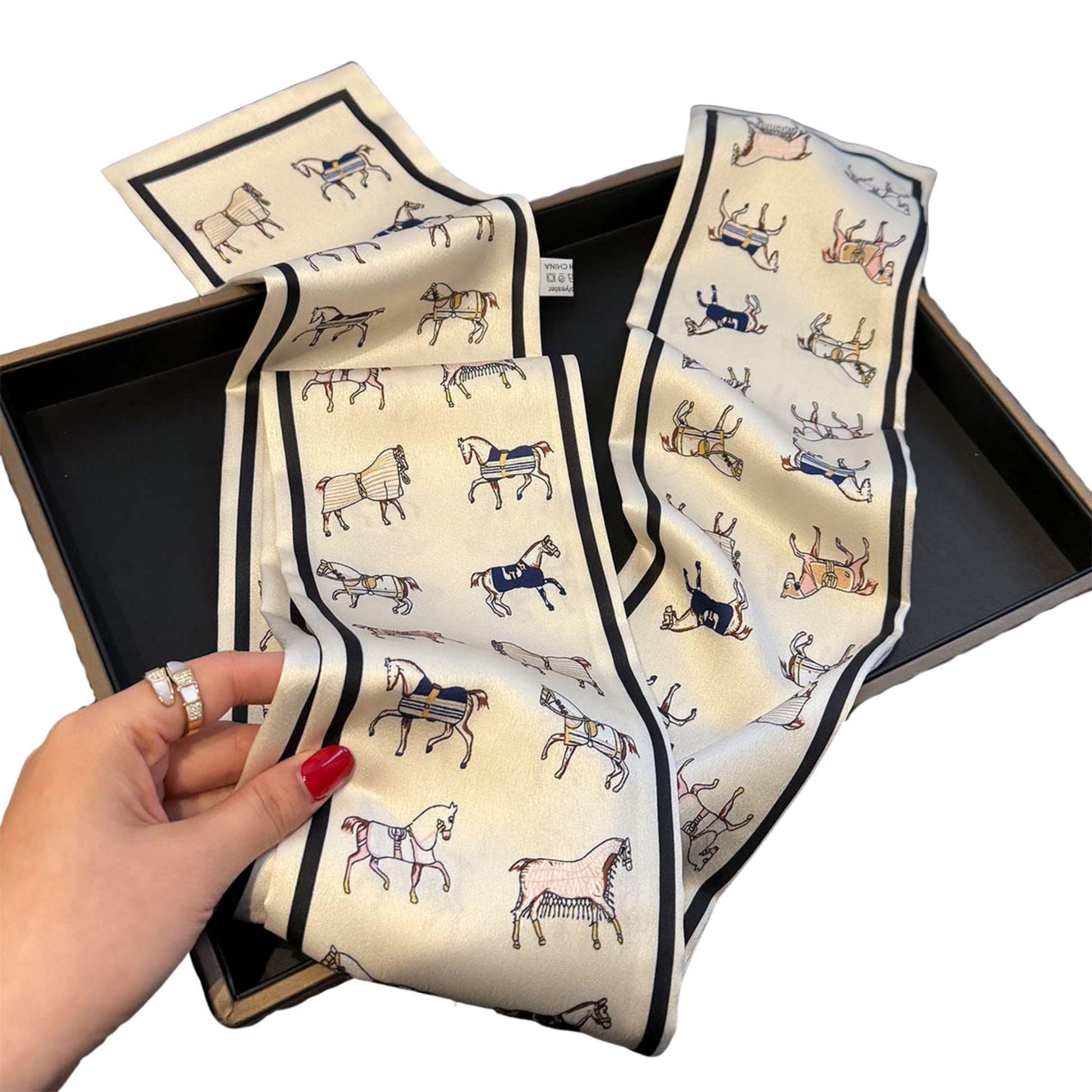 BAILEY Horse Design Silk Look Satin Skinny Scarf - 145 X 13 cms