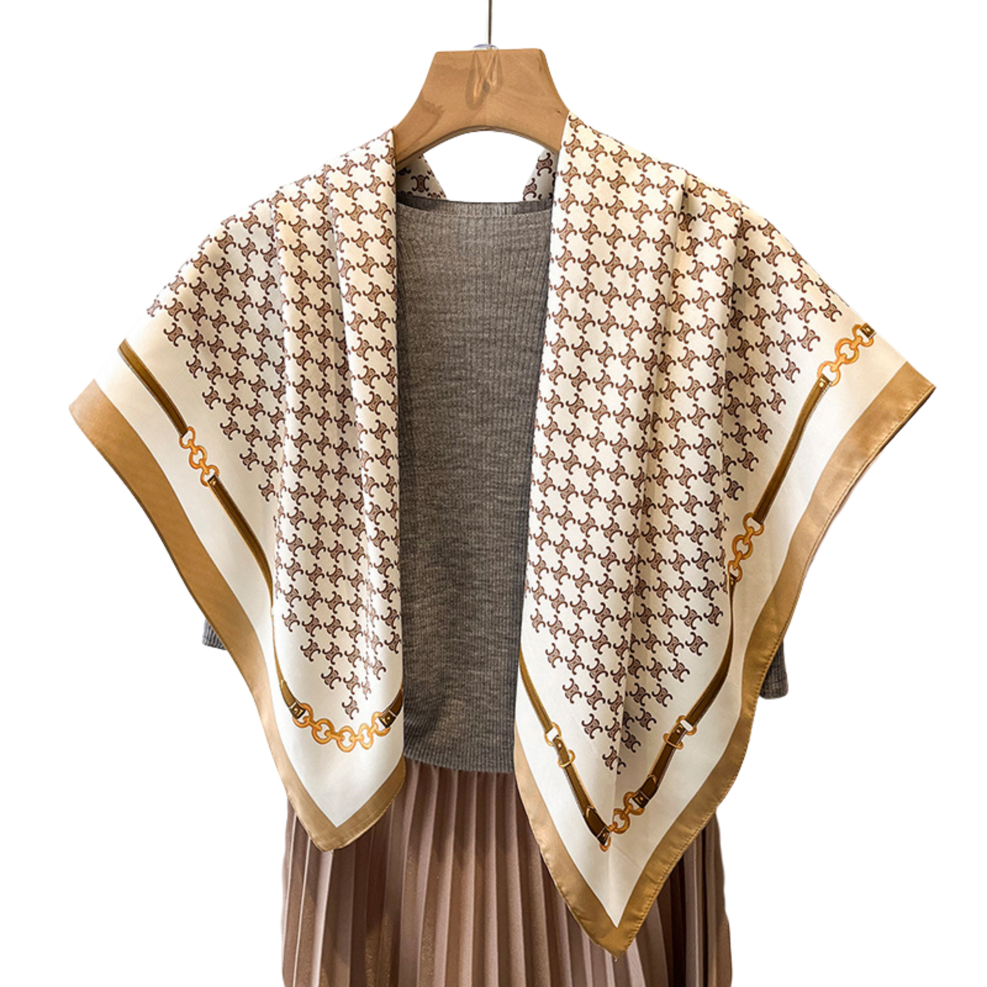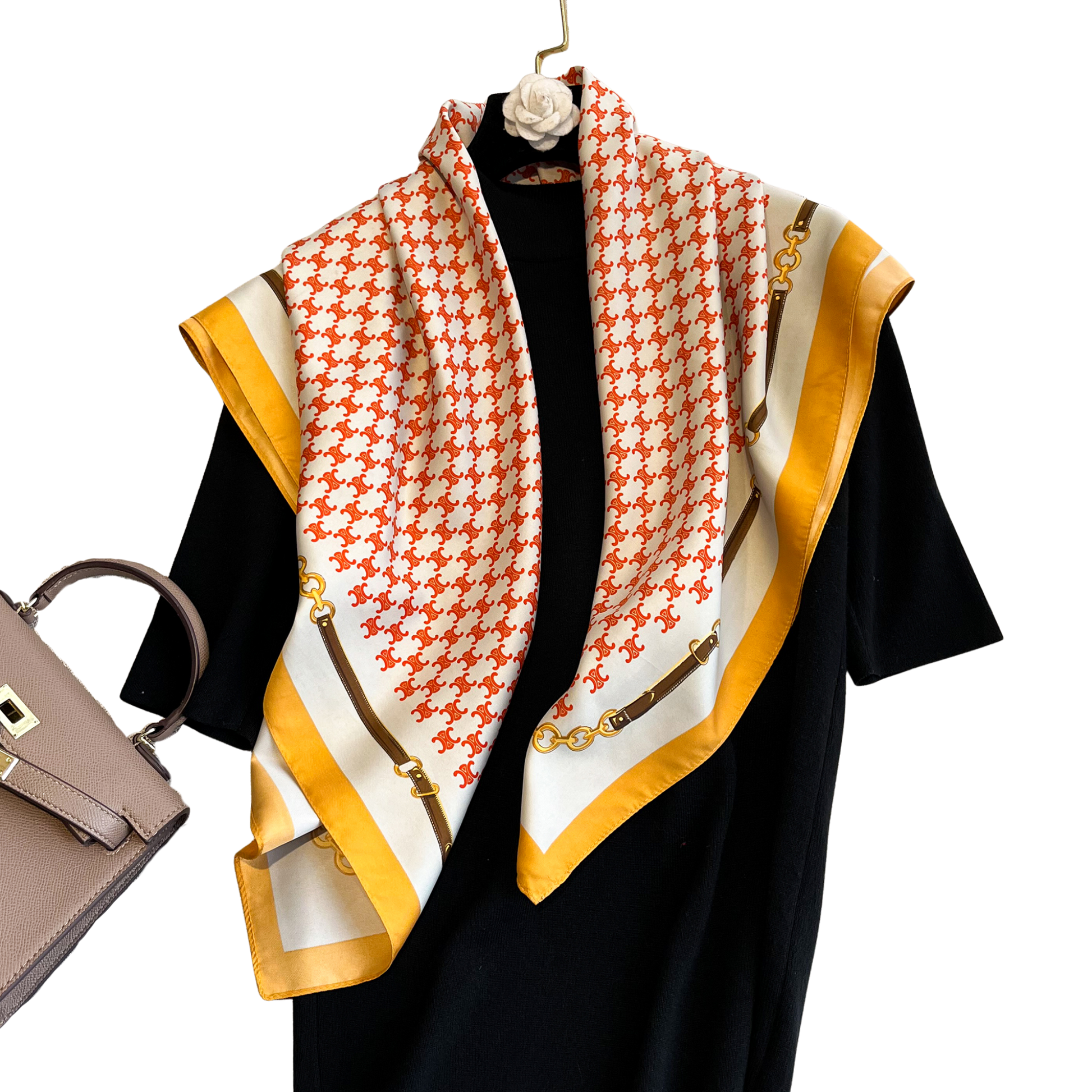 The large, twill scarf is a versatile accessory that combines style with functionality. Crafted from high-quality synthetic fibres, this scarf features a soft, smooth texture and a vibrant sheen that adds a touch of elegance to any outfit.It can be draped around the neck for warmth, styled as a wrap over the shoulders for a chic look, used as a hair wrap or tied on a hat.