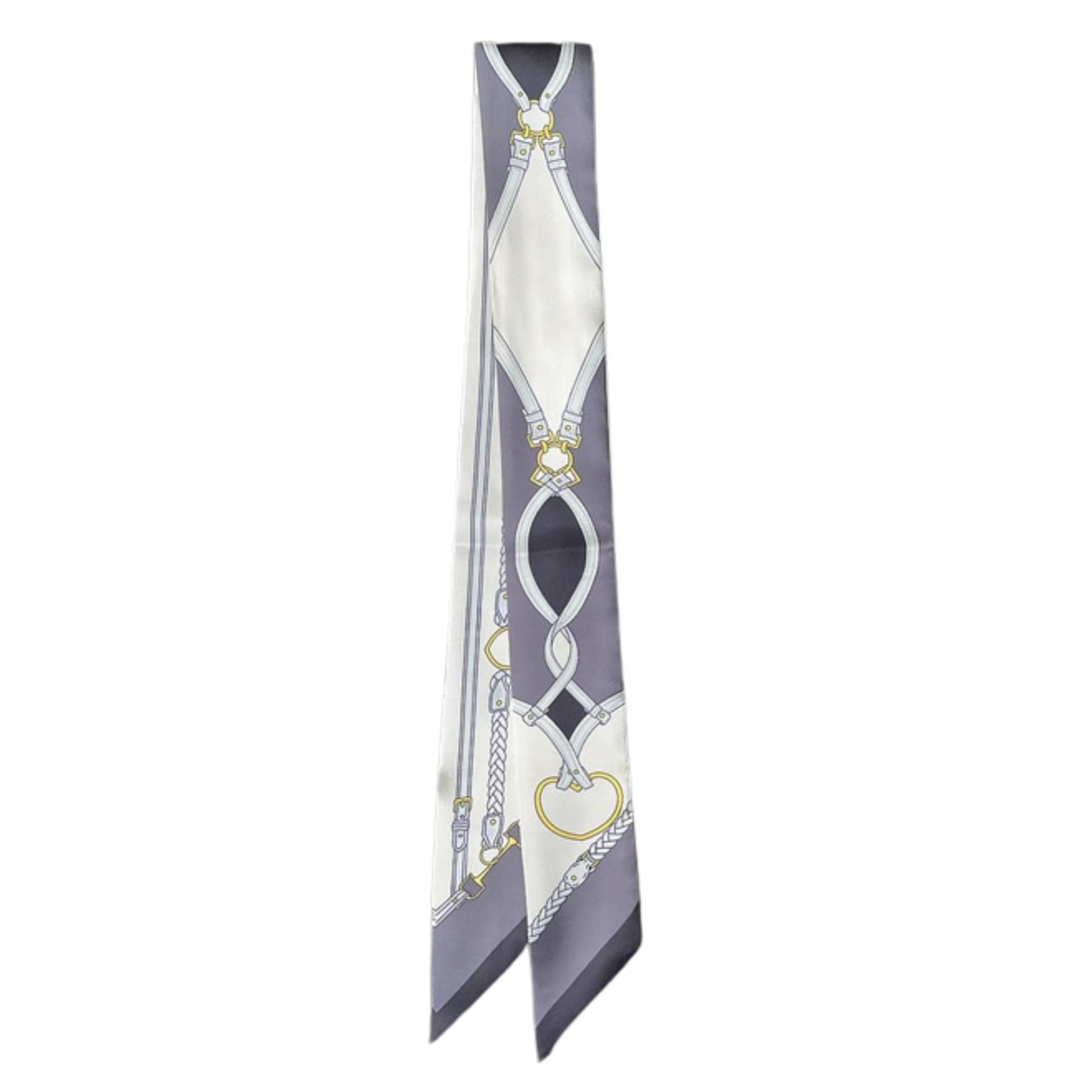 A twilly scarf, a long and narrow piece of fabric, that has a robust "twill" weave, and offers a versatile array of uses that extend beyond traditional neckwear.