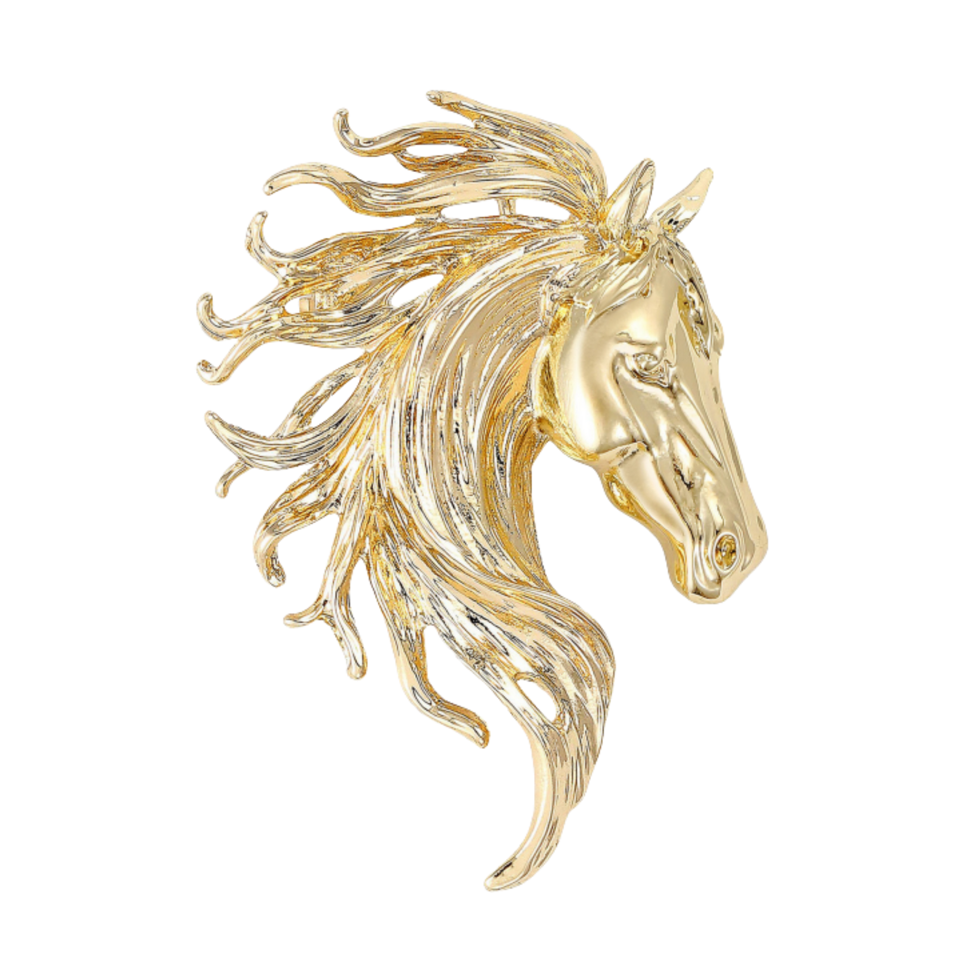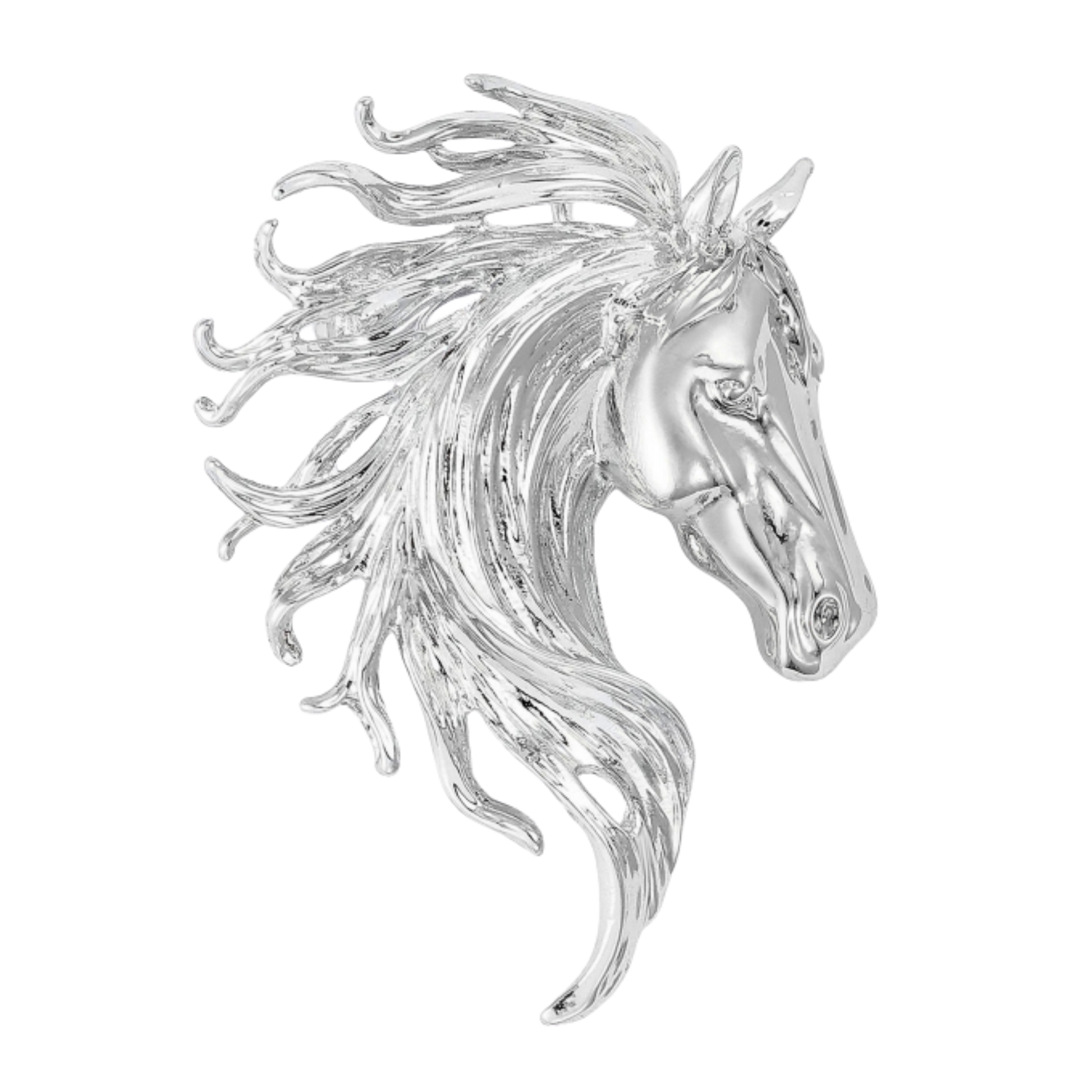 This timeless horse head brooch captures equestrian elegance in refined detail. Available in three classic finishes—bright gold, silver, and pewter—each piece showcases the noble profile of a horse head with polished craftsmanship.
