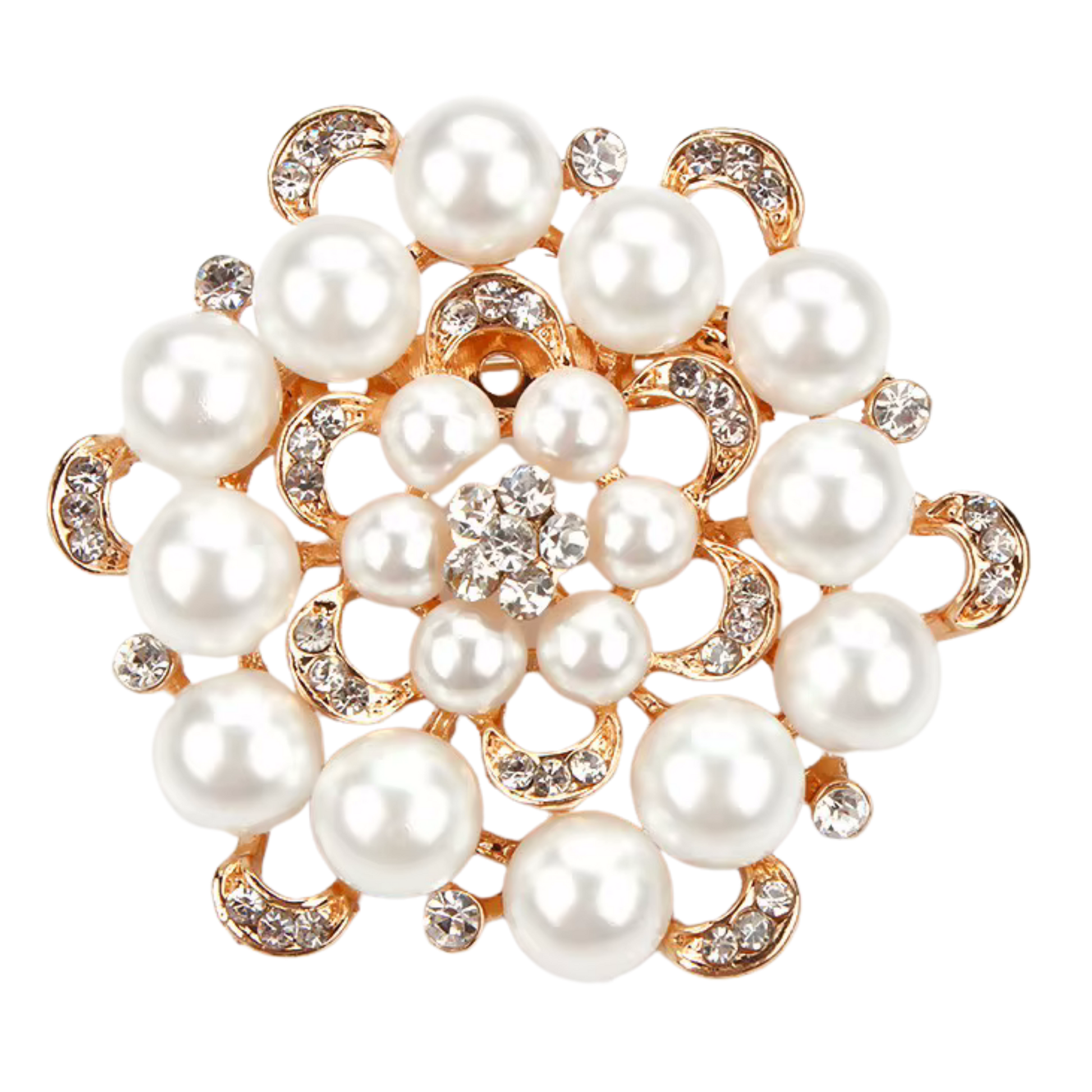 Available with either gold or silver jewellery findings, and complimented by clusters of lustrous faux pearls, it adds a touch of sophistication and classic charm to any outfit. The brooch is designed with a secure clasp to ensure it stays in place, whether adorning a delicate scarf or a traditional equestrian stock.