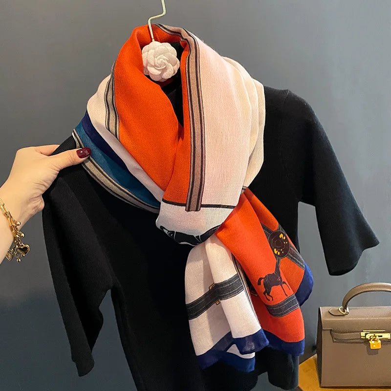 ELOISE Horse Design Linen Look Scarf - 180 x 90 cms