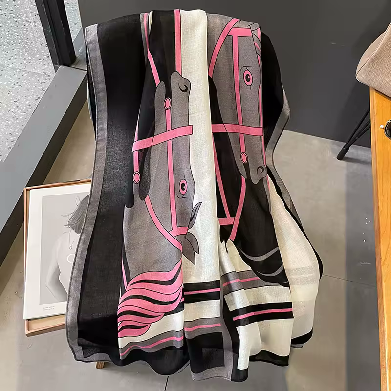 ETTA Horse Design, Linen Look Scarf - 180 x 90 cms