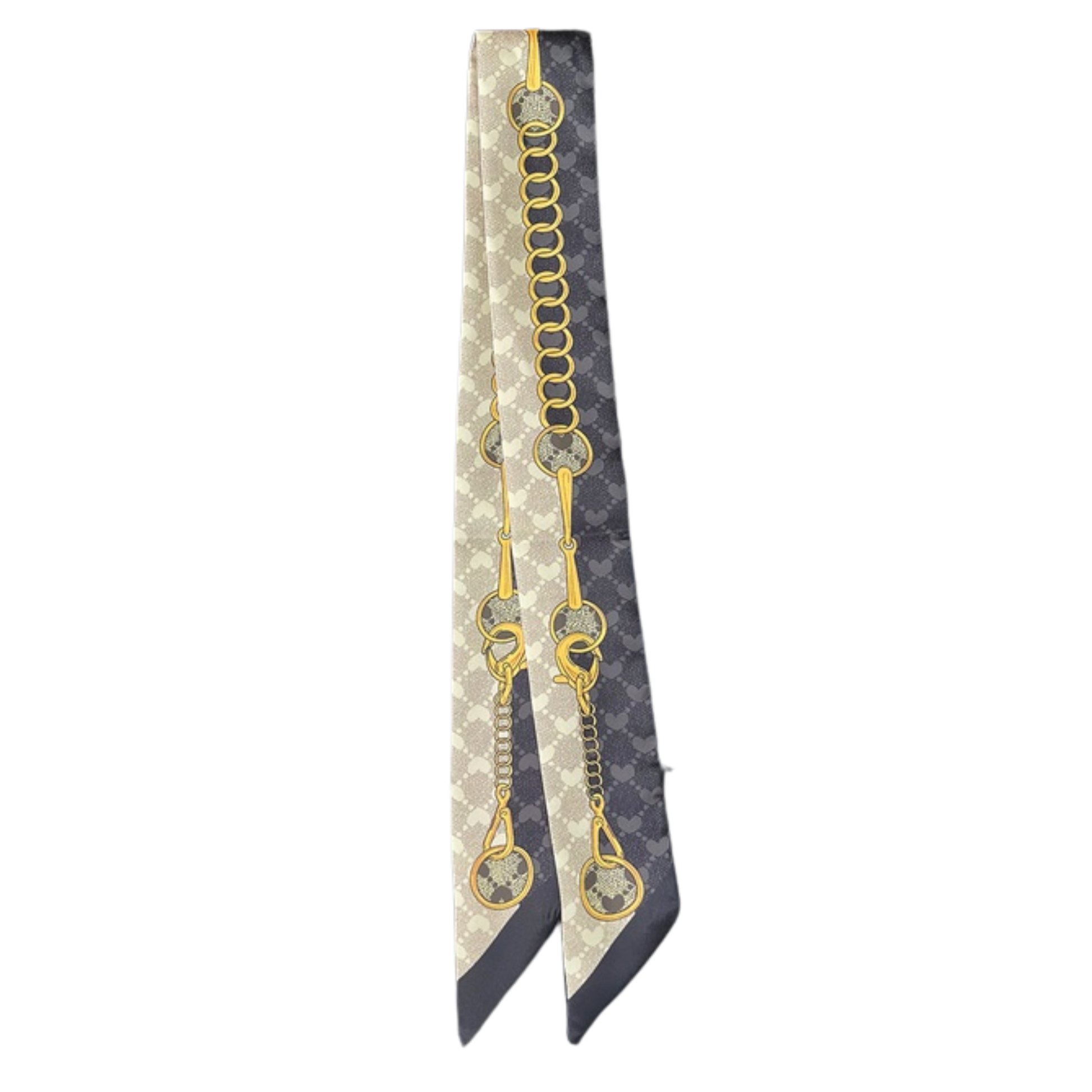 A twilly scarf, a long and narrow piece of fabric, that has a robust "twill" weave, and offers a versatile array of uses that extend beyond traditional neckwear.