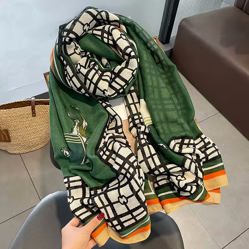 MAVIS Horse Design, Linen Look Scarf - 180 x 90 cms