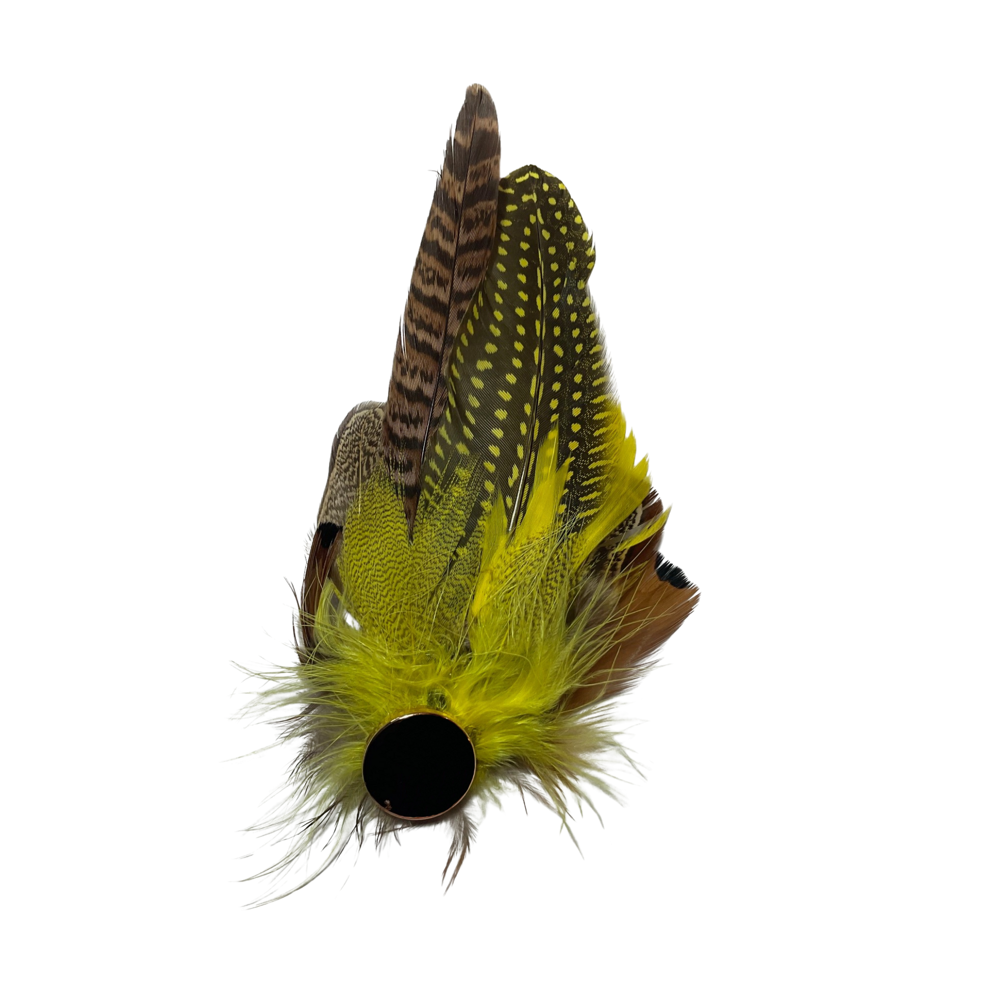A luxurious feather hat plume adds elegance and sophistication, featuring vibrant colours and intricate patterns that create a distinctive and opulent accessory.