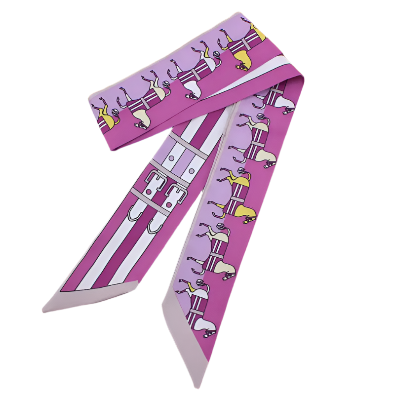 A twilly scarf, a long and narrow piece of fabric, that has a robust "twill" weave, and offers a versatile array of uses that extend beyond traditional neckwear.