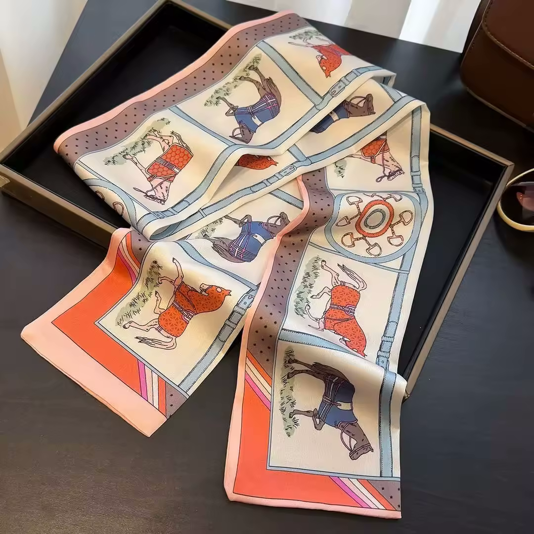 CHARLOTTE 145 Horse Design, Silk Look Satin Skinny Scarf - 148 X 12 cms