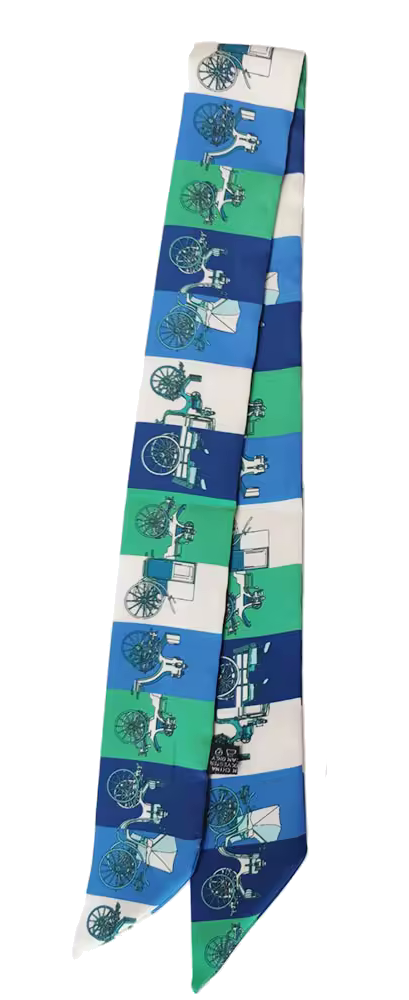 A twilly scarf, a long and narrow piece of fabric, that has a robust "twill" weave, and offers a versatile array of uses that extend beyond traditional neckwear.