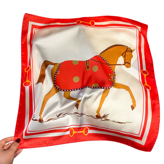 BOSTON Horse Design, Satin Scarf - 70 x 70 cms